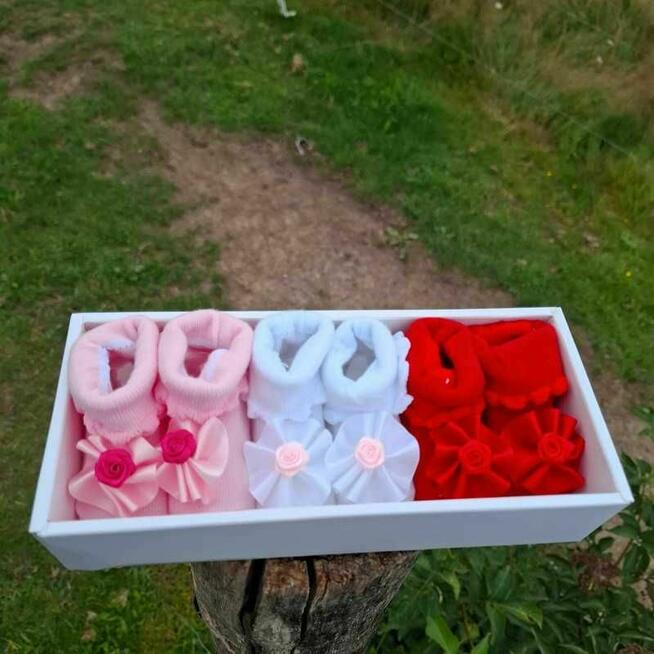 Nowy zestaw skarpetek dla niemowlaka w rozmiarze 56–62 cm (0–3 miesiące), bez metki. Kolory: czerwony i biały 3 zestawy ...