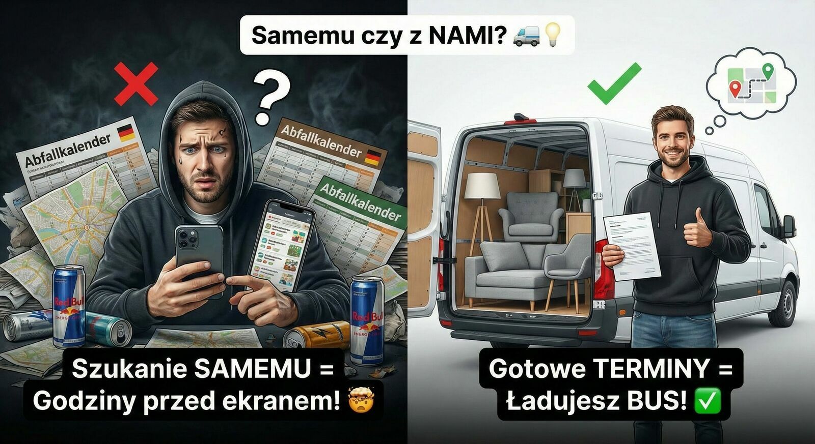 Szanujesz swój czas i paliwo? Przestań jeździć „w ciemno”!Oferuję profesjonalny Zestaw Tygodniowy PRO z terminami wystawek (Sperrmüll) na terenie całych Niemiec. To niezbędnik dla każdej ekipy, która chce wracać busem załadowanym po dach.